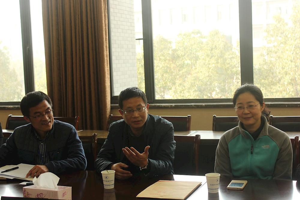 顾校长(左三)介绍本次奖助学金的设立及受助学生的前期推荐审核情况