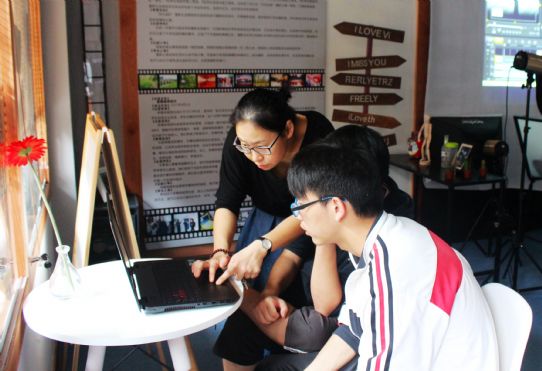 “艺星一驿”的虞峰老师正在与同学练习声乐基础