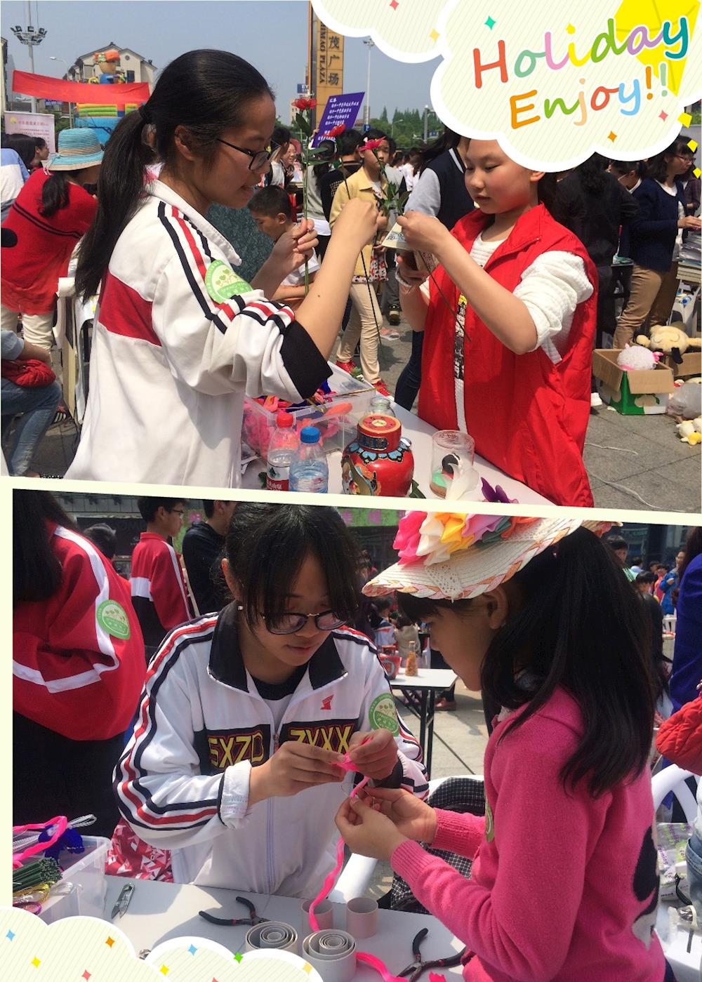 手工丝网花展区是孩子们的最爱,一起动手DIY一朵玫瑰花送给家人,道上一句父母辛苦了,浸润了长辈的眼眶;而一旁的创意义卖窗口也吸引到了不少爱心家长,手工香皂、玻璃小黄人、手绘酒坛等早早售罄……直到活动结束,绍兴中专窗口共募集善款389.5元。