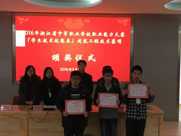 施永涛同学荣获2016年全省中职学校职业能力大赛建筑CAD项目一等奖