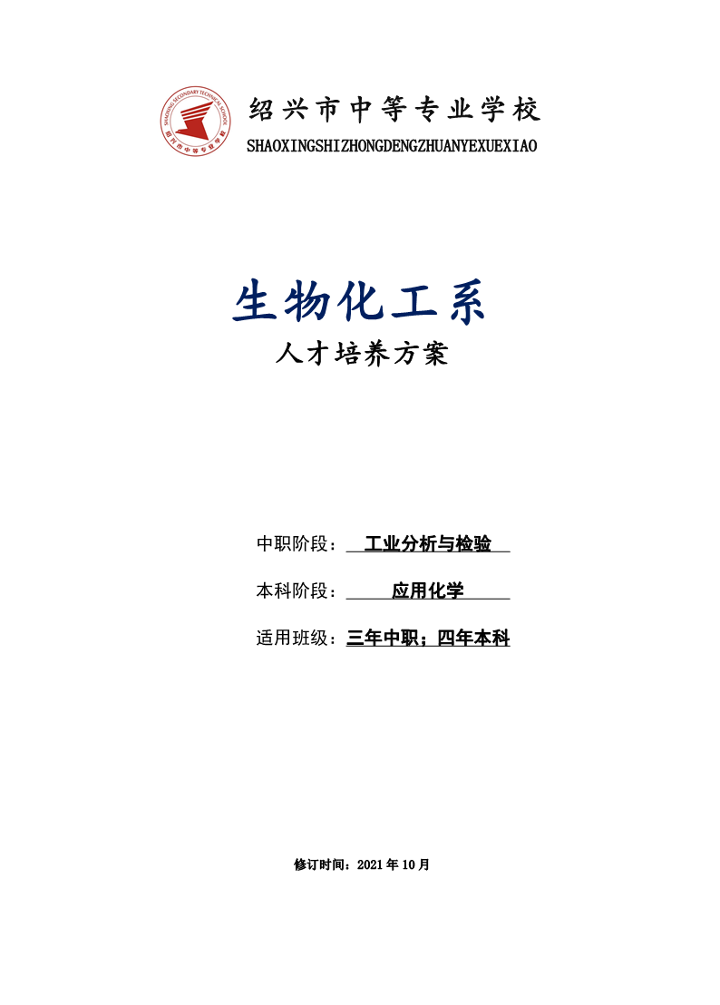 生物化工系工业分析与检验专业人才培养方案