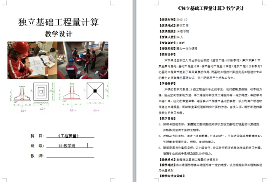 1、工程算量平面立体教学法教学设计的研究及确定:2016年3月~6月。通过教师暑期下企业,实地考察、与有经验的造价员、造价师进行访谈等形式对造价专业的现状、各分项工程的工程量计算方法,造价员所需掌握的知识和技能等进行调查,从而获得第一手资料,为工程算量教学方法的研究提供实践依据。