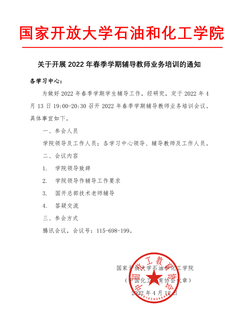 关于开展2022年春季学期辅导教师业务培训的通知