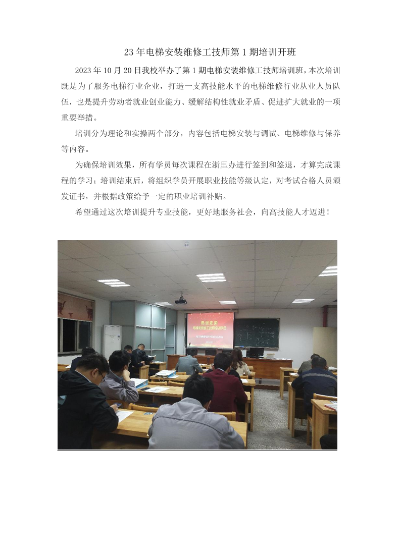 23年电梯安装维修工技师第1期培训开班_主要新闻_学校概况_绍兴培训学校_绍兴市中等专业学校