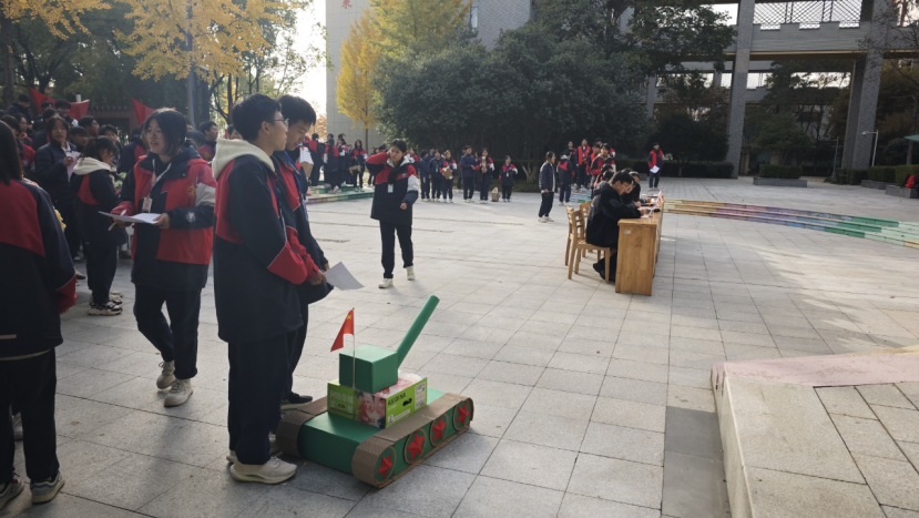 “快看!这坦克造型的纸箱萌宠也太酷了!”11月27日,秋日暖阳下的校园立人广场上,一场以“废旧焕新”为主题的纸箱萌宠创作赛热闹开锣,学生们用旧纸箱、包装材料打造的创意作品,让废旧物品摇身变成了趣味十足的“校园新宠”。