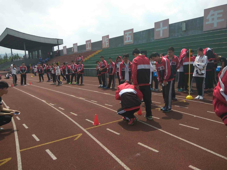 第一关,是比两位同学间的默契,你来比划我来猜,纸上写好一个成语,一位同学看后靠肢体或者与成语相关的各种方面来提示,另一位同学猜对后便用红绳绑住两人的脚,一齐向前走,到达下一组的同学那边,然后就开始另外的一小组游戏开始,双人跳绳,一人拿住绳子的一边,跳满10个后也用红绳绑住脚,一齐走到下一组,最后的两位同学就弯下腰开始转圈圈,5圈后跑向终点,拍响鼓后算游戏结束。过程中有同学跟着记录所用的时间,用时最少的就是第一名,依次类推。