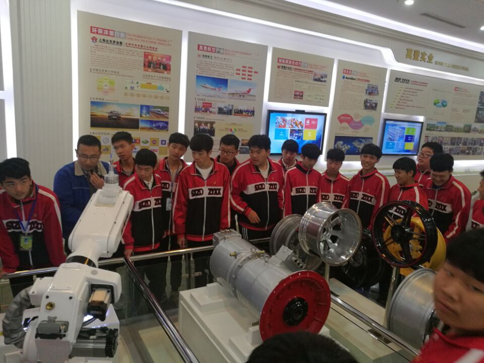作为浙江省现代学徒制试点学校,通过前期走访摸排,确定了新昌万丰奥特控股有限公司为该试点合作企业。除了企业专家来校授课,学校还组织学生下企业,通过识岗工学,让学生认识企业。11月2日,“万丰”班的同学们在张炎慧、李鹏、彭增鑫等六位老师的带领下,到新昌万丰集团进行实地学习,很多学生是第一次参观企业,充满了期待与喜悦之情。