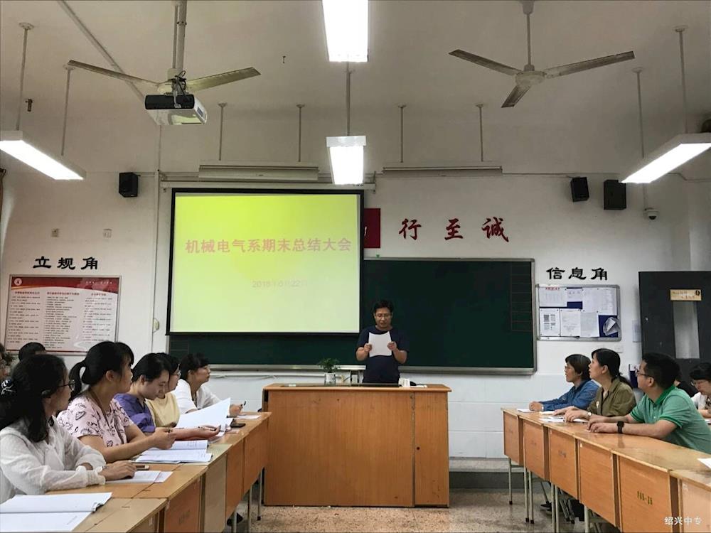 6月22日,机械电气系在516教室召开了2017学年第二学期期末总结大会,大会由系书记吴志燕主持。