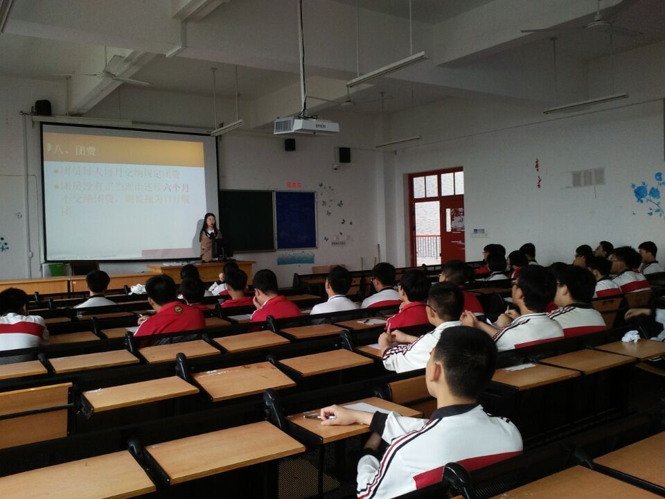 12点30分,团课学习正式开始,徐老师用PPT展示的方式,向团员们介绍了团的基础知识,共青团的艰辛发展和光辉奋斗史。台下的同学们,都认真的听讲,并仔细做着笔记。他们那一双双炯炯有神的眼睛中都透露出对团组织的敬佩与对团员的向往,从他们的目光中我看出了同学们对团组织发自内心的自豪。