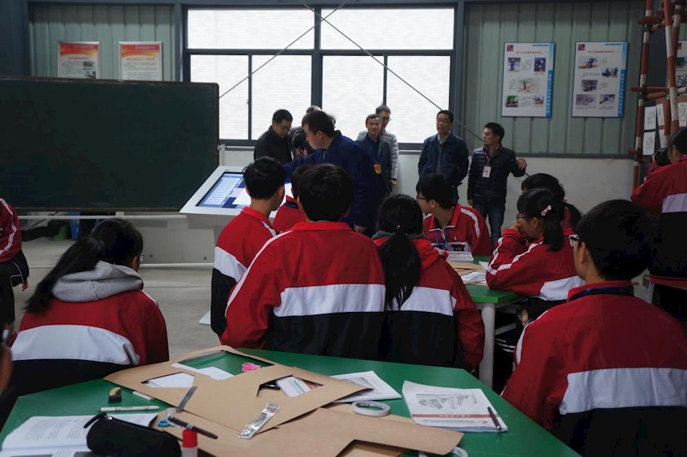 专家组参观建筑施工实训室