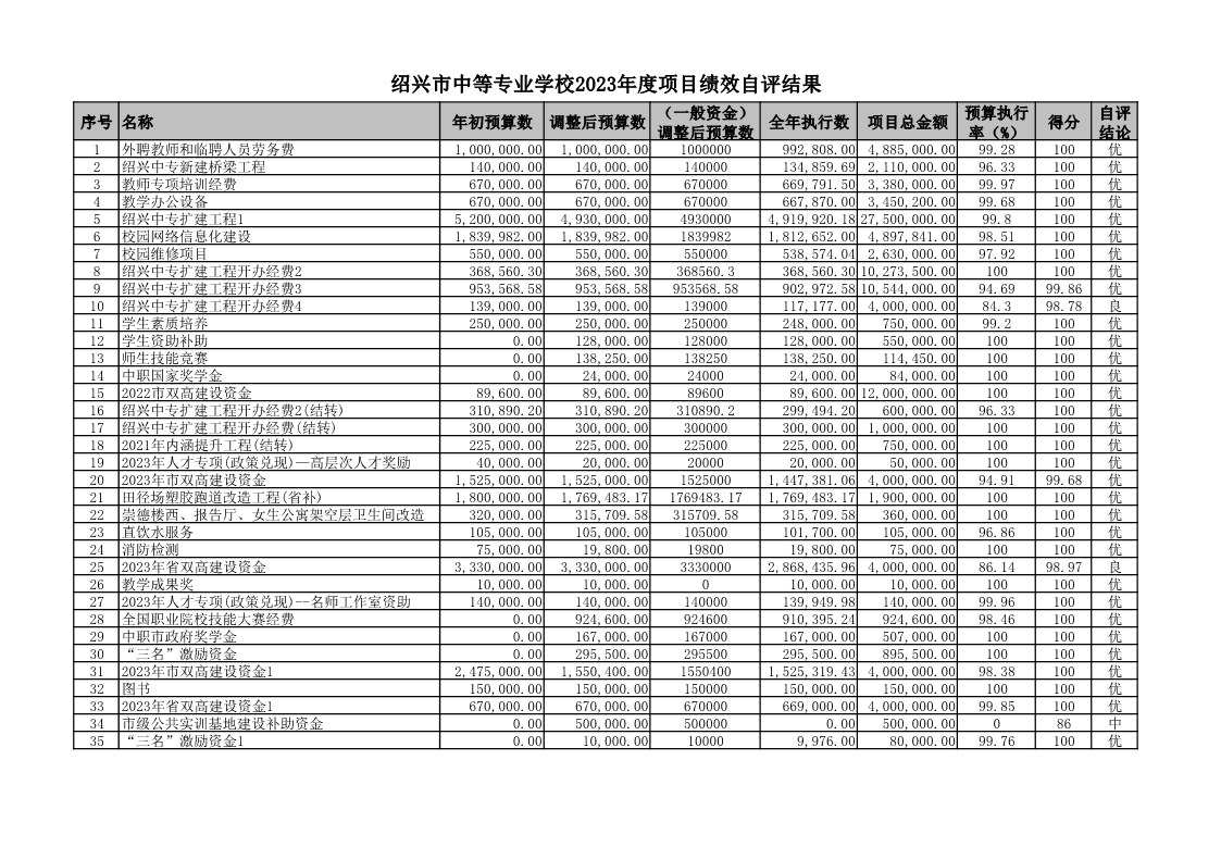 绍兴市中等专业学校2023年度项目绩效自评结果