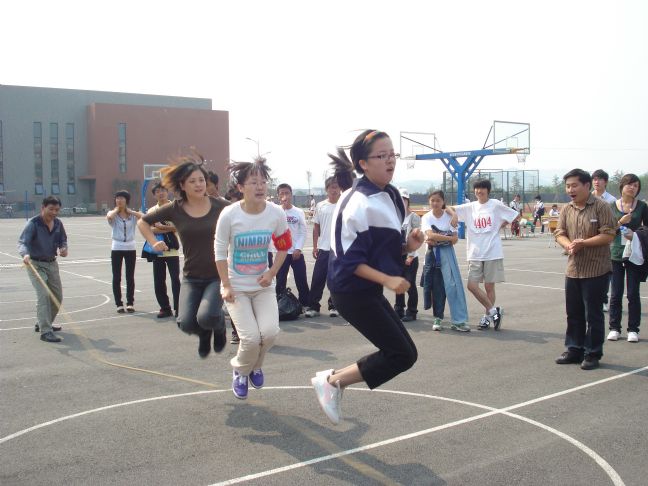 为增强体质、丰富教工的课余文化生活,促进教工的身心健康,增强教职员工间的凝聚力。工会于 2009年 10月 16日 上午 11时 ,组织教职工以工会小组为单位参加第二十四届校运动会。比赛项目跳长绳比赛。共有7个 工会小组参加了比赛。在比赛中,老师们本着“重在参与、锻炼身体”的宗旨,热情参与、努力拼搏、。赛场上,平时文文静静的教师们到了赛场都成了高手,只听见了呼呼的甩绳声、加油声、数数声。虽然平日里每位老师大都埋头工作,但运动起来,也是个个身手敏捷。同学们也在场 边给 老师们加油助威,场面十分的热闹。女老师们在比赛中的优势十分的明显,男老师们也是重在参与,比赛现场充满了活跃的气氛,更多的是开心的笑声。最后外语工会小组获得了集体跳绳第一。学校工会希望组织这次的活动来鼓励学校老师积极投身全民健身活动,努力营造体育锻炼的氛围,提倡“每天锻炼一小时,快乐健康一辈子”的理念并以此作为学校迎接新校第一次运动会的系列活动之一,积极为大家提供健身交流的融洽环境。通过此次活动,增强了职工队伍的体质,增强了全体员工集体荣誉感,增进了同志间的默契和团结合作的能力,活跃了职工业余文化生活,体现了团队精神,更让同志们在运动中体会到了快乐。