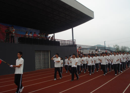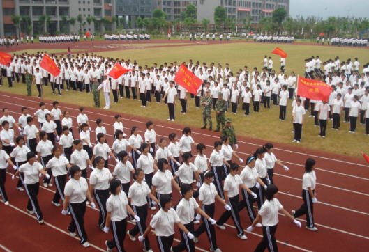 8月30日上午10时,操场军歌嘹亮、口号声不断,2009级新生军训闭营仪式在这里隆重举行。校领导及部队首长出席了闭营仪式。