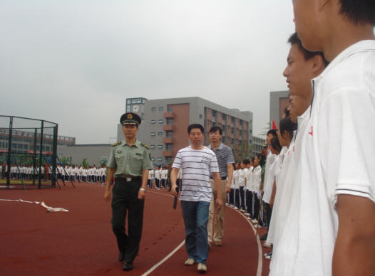 在嘹亮的口号声中,闭营仪式正式开始。首先,校长娄华水、书记王成相在部队首长的陪同下检阅了由26个列式方队。同学们排着整齐的队列,焕发着坚毅刚强的军人风采接受了检阅,显示了这次军训取得的显著成果。