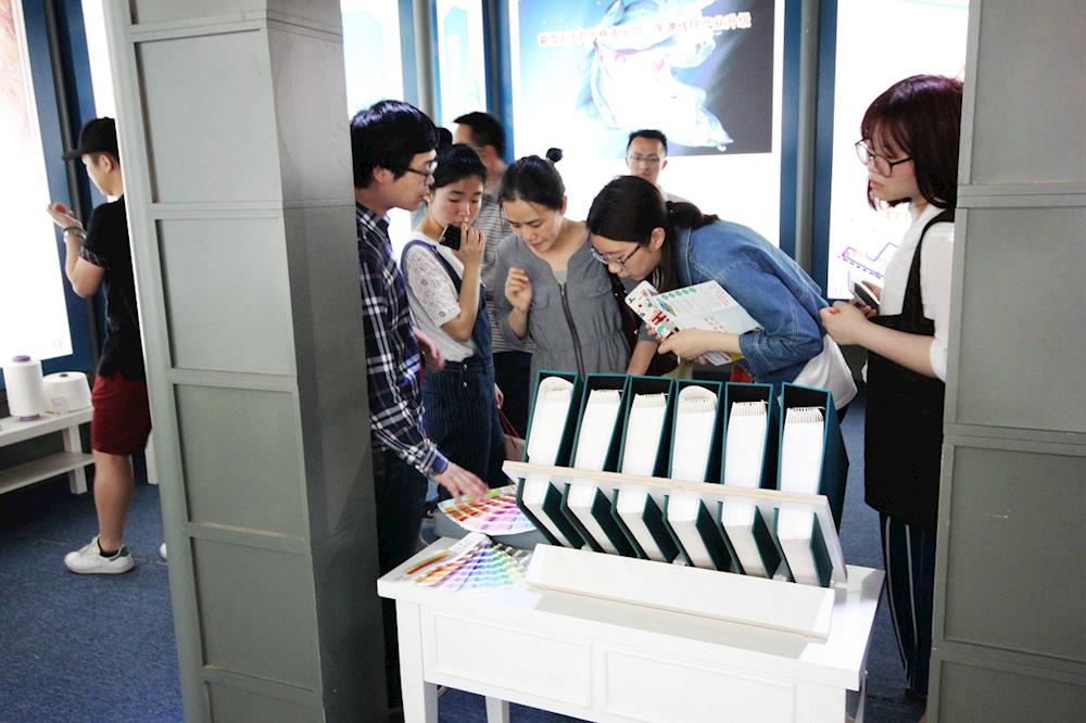 采访团参观纺织品陈列馆