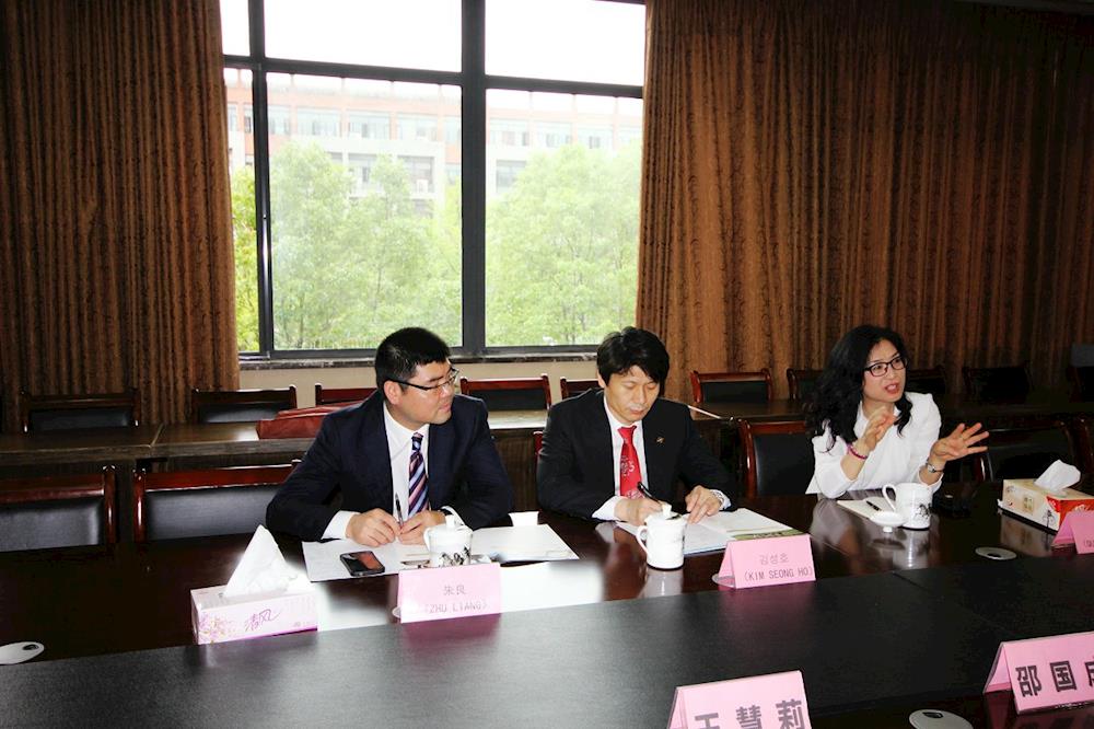 会谈过程中,邵国成校长对参加合作办学签约仪式活动的中源大学客人表示了热烈的欢迎。他指出,同韩国中源大学开展办学合作,这是学校实现校校合作的又一个新成果,是学校对外合作办学的又一新举措。紧接着,韩国中源大学校全教授和朱博士介绍了该校的办学情况和招收留学生的相关意向,以及相关专业课程设置、就业前景、资费问题、留学申请程序等内容。之后,双方就设立留韩定向班、合作招生、文化交流等事项进行了磋商,双方表示要发挥各自的资源优势,密切互访、加强互信,进一步加强深度合作交流,为提升各自学校的社会影响力,为增进中韩两国友谊做出更大努力。