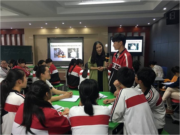 图为职教中心陈徐丹老师的口语课 Self Introduction