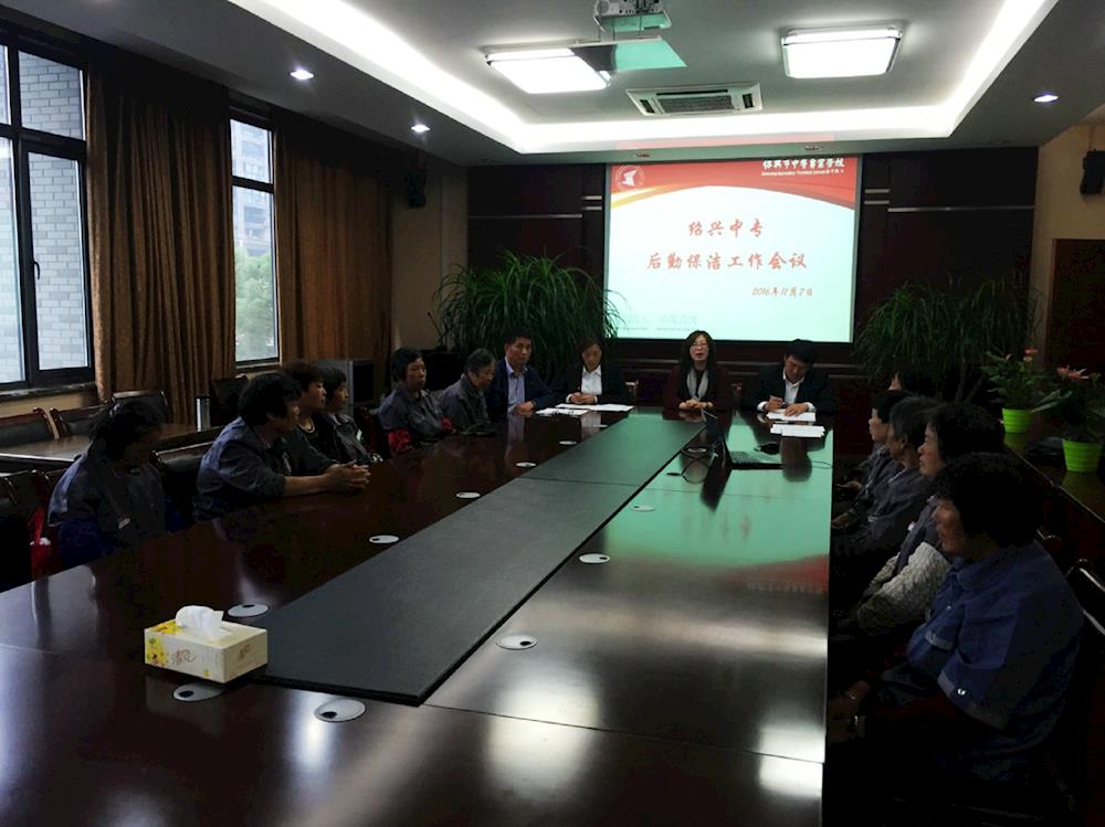 为了更好地开展后勤服务,提升学校整体形象,推进美丽校园建设,打造市级文明学校。11月7日总务处召开了后勤保洁工作会议,学校副校长於芳、总务处副处长王苑出席了会议。