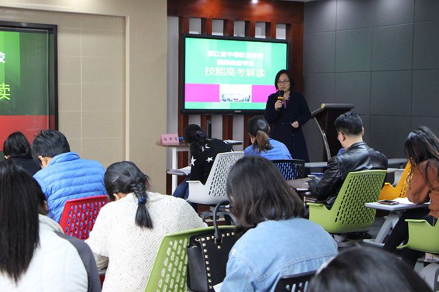 11月14日下午,来自全省各地市多所中职学校的财会和外贸专业的教师近90人齐聚,参加了在这里举行的2016年浙江省高职考试研究联合体学科教研活动。高职考试研究联合体名誉理事长、全国说课金牌教练李庆,东博文化传媒有限公司总经理、高职考试研究联合体秘书处刘景通,慈溪职高外贸专业组长陆梦青,财贸系主任周铭梨出席本次活动,教务处副处长张炎惠主持了本次教研活动。