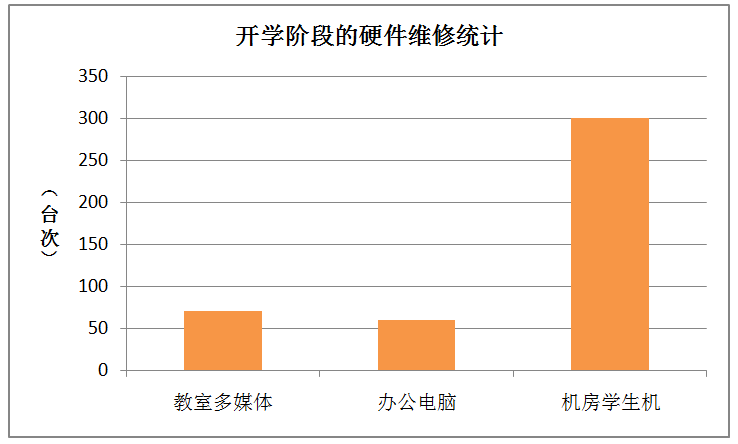 一是做到硬件设备维修到位。开学前,信息中心便对全校多媒体设备、故障电脑进行了全面维修,其中包括:维修教室内多媒体设备70余台,维修教职工办公室内电脑60余台,检修机房学生机300余台,解决了软硬件问题、开机故障、网络故障、打印机故障等多项问题。同时,为确保网络稳定,对安置在崇学楼、崇德楼、崇技楼、学生公寓等建筑井道的交换机、路由器等也进行了全面的维护。