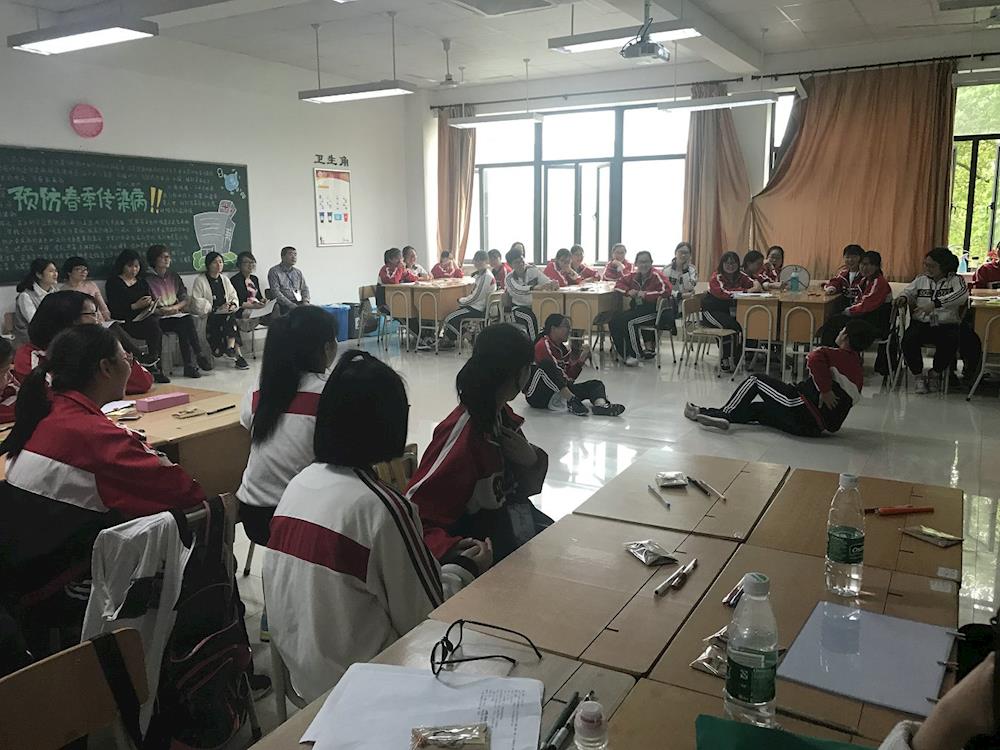 图为师生一起进行游戏互动