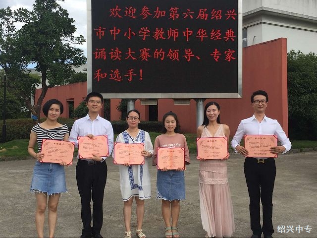 继学生经典诵读比赛之后,8月22日,第六届绍兴市中小学教师中华经典诵读大赛也在绍兴艺术学校音乐厅如期举行,教师王国权、李琳、虞峰、郑瑜、杨赟在领队傅卫莉老师的带领下参加了市直学校教师诵读比赛的比拼。在舞台上,五位老师配合默契,他们声情并茂、慷慨激昂地朗诵了献给长征胜利80周年的诗歌《足迹》,那激情满怀,感人至深的朗诵带领大家穿越历史的硝烟,一起回顾了那段艰苦卓绝的岁月。最终,教师代表队不负众望,凭借高超的朗诵艺术和舞台表现获得了市直学校朗诵比赛二等奖的好成绩。