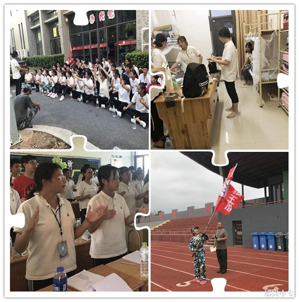 军训过程中,付出辛劳也收获快乐,军训让师生彼此的理解信任与日俱增。练队列、唱军歌、争夺狼王旗、内务整理展示……有太多记忆值得细细回味。“天气很热,但军训很有锻炼价值”休息间隙,一个憨直的男生快言快语地说道。有的同学坦言,平常运动量少,正好借此良机强身健体。“孩子们都比较踏实,一些动作要领说上一两遍就能基本掌握”,17建筑1班黄教官的评价简洁明了。班主任也普遍认为学生态度可嘉,大多较为自律。“我觉得应该表扬一下班上的女生,她们非常勤勉,完成动作的规整丝毫不亚于男生”17工程造价5年班的班主任王力斌老师由衷赞许。17建筑3班班主任裘炜炜老师也对班上一位女孩子的坚韧印象深刻,该生尽管身体上略有不适,依旧积极克服困难,毫不犹豫地表态“我能坚持!”