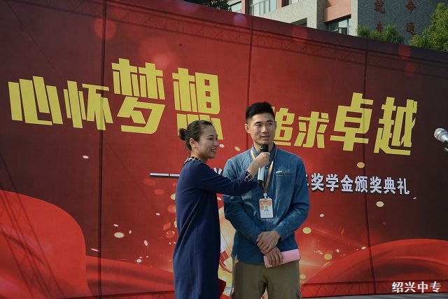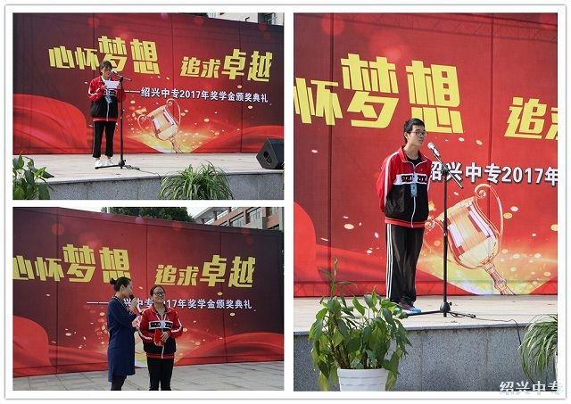 在本次颁奖大会中,有21位同学获得了社会奖嘉意奖学金。嘉意奖学金是由绍兴市红十字会嘉意爱心基金提供的,由爱心人士周海波先生个人申请发起设立,旨在帮助寒门学子完成学业,强化其职业教育和技能培训,培育其精益求精的工匠精神,打造一批符合社会需求的各行业“未来工匠”。周海波先生还特地来到颁奖大会的现场,和大家交流他的成长历程,勉励在座的中专学子珍惜美好年华,努力学习文化和技能,成为一个对社会有所贡献的人。