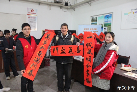 旅客朋友:请带上一份师生写的春联和“福”字,带着书法之乡人朴素的祝福回家吧!