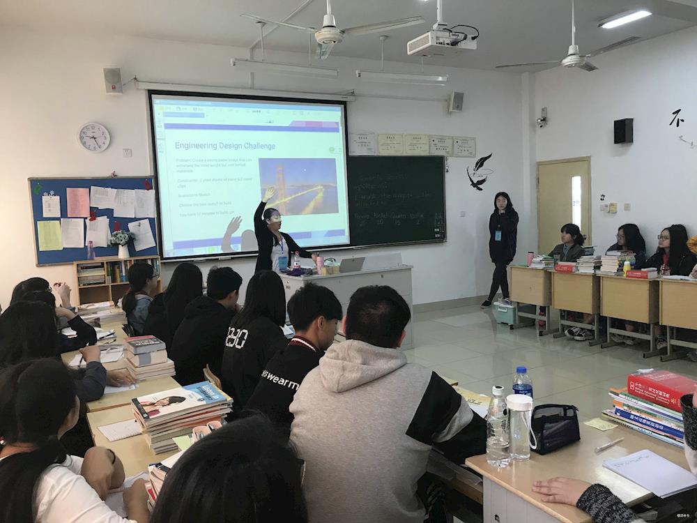 上午,来自越秀姐妹学校美国玛雅安杰卢高中的5位外教开出了公开课,英语教研大组的教师们 分别选择了不同的班级听课。美国外教的授课轻松自然,他们鼓励学生们参与讨论、积极发言,同学们浸润在英语的语言环境里,也能积极地回应外教,围绕课堂主题进行英语交流。观摩教学后,美国教师进行了教学管理座谈和升学指导讲座,中美双方教师交流学习、研讨教学。