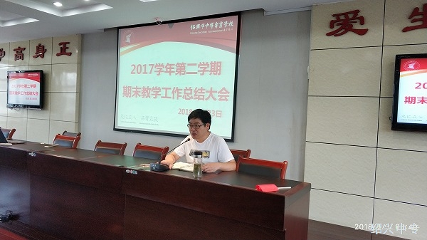 7月3日上午,2017学年第二学期教学工作总结交流会暨校三名工程年度工作汇报会在学校崇德楼401会议室顺利举行。校长邵国成、常务副校长於芳、校长助理胡邓涛出席大会,全体教师参加了本次大会,会议由教务处处长卓建华主持。