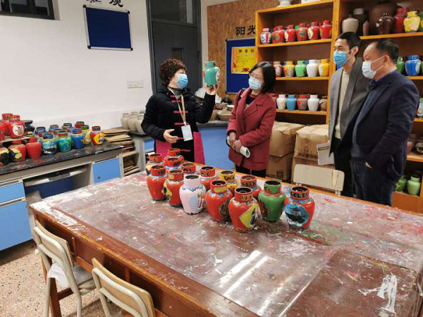 ——绍兴市非遗中心领导来校考察绍兴花雕制作非遗教学基地建设