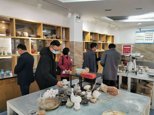 会后,在我校生物化工系主任任吉丹的带领下,考察团队参观了花雕技艺工作室和花雕展厅。考察团队对我校师生制作的花雕作品表示了充分肯定,并提出希望学校充分运用绍兴黄酒文化遗产资源,发挥自身优势,推进区域特色文化建设,要注重通过非遗传承基地、非遗展示馆等平台建设,推进花雕技艺的保护传承工作,促进文化遗产的展示宣传。同时,要进一步不断加大宣传力度,加深公众对文化遗产的了解和认识,促进社会共享。